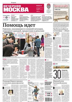 Еженедельный выпуск «Вечерней Москвы» — это значимые события недели, афиша города, новости из сферы отдыха и развлечений, телепрограмма с анонсами и комментариями, авторские колонки журналистов и авторитетные мнения экспертов, детская страничка, специальная рубрика «Золушка», интересные репортажи о необычных судьбах московских жителей, постоянные конкурсы и викторины.