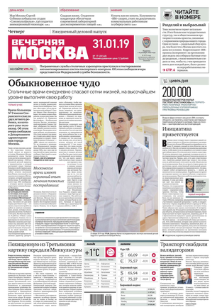 «Вечерняя Москва» — ежедневная российская вечерняя газета, старейшее из вечерних изданий в России, учрежденное в 1923 году. Выходит пять дней в неделю, кроме субботы и воскресенья. Отличается тем, что рассказывает о событиях еще не завершившегося дня. Оперативно освещает хронику и особенности жизни Москвы, охватывает все слои общества и большинство профессиональных и возрастных групп читателей.Издание представлено тремя выпусками – утренним ежедневным, вечерним (выходит три раза в неделю), еженедельным (выходит по четвергам).