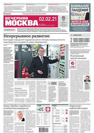 «Вечерняя Москва» — ежедневная российская вечерняя газета, старейшее из вечерних изданий в России, учрежденное в 1923 году. Выходит пять дней в неделю, кроме субботы и воскресенья. Отличается тем, что рассказывает о событиях еще не завершившегося дня. Оперативно освещает хронику и особенности жизни Москвы, охватывает все слои общества и большинство профессиональных и возрастных групп читателей.Издание представлено тремя выпусками – утренним ежедневным, вечерним (выходит три раза в неделю), еженедельным (выходит по четвергам).