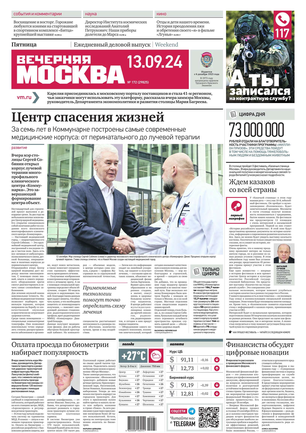 «Вечерняя Москва» — ежедневная российская вечерняя газета, старейшее из вечерних изданий в России, учрежденное в 1923 году. Выходит пять дней в неделю, кроме субботы и воскресенья. Отличается тем, что рассказывает о событиях еще не завершившегося дня. Оперативно освещает хронику и особенности жизни Москвы, охватывает все слои общества и большинство профессиональных и возрастных групп читателей.Издание представлено тремя выпусками – утренним ежедневным, вечерним (выходит три раза в неделю), еженедельным (выходит по четвергам).