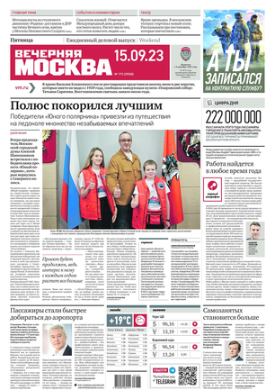 «Вечерняя Москва» — ежедневная российская вечерняя газета, старейшее из вечерних изданий в России, учрежденное в 1923 году. Выходит пять дней в неделю, кроме субботы и воскресенья. Отличается тем, что рассказывает о событиях еще не завершившегося дня. Оперативно освещает хронику и особенности жизни Москвы, охватывает все слои общества и большинство профессиональных и возрастных групп читателей.Издание представлено тремя выпусками – утренним ежедневным, вечерним (выходит три раза в неделю), еженедельным (выходит по четвергам).