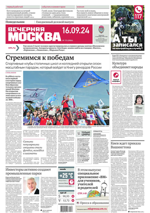 «Вечерняя Москва» — ежедневная российская вечерняя газета, старейшее из вечерних изданий в России, учрежденное в 1923 году. Выходит пять дней в неделю, кроме субботы и воскресенья. Отличается тем, что рассказывает о событиях еще не завершившегося дня. Оперативно освещает хронику и особенности жизни Москвы, охватывает все слои общества и большинство профессиональных и возрастных групп читателей.Издание представлено тремя выпусками – утренним ежедневным, вечерним (выходит три раза в неделю), еженедельным (выходит по четвергам).