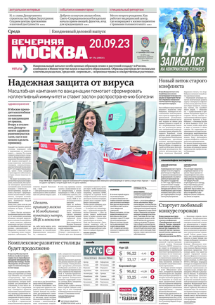«Вечерняя Москва» — ежедневная российская вечерняя газета, старейшее из вечерних изданий в России, учрежденное в 1923 году. Выходит пять дней в неделю, кроме субботы и воскресенья. Отличается тем, что рассказывает о событиях еще не завершившегося дня. Оперативно освещает хронику и особенности жизни Москвы, охватывает все слои общества и большинство профессиональных и возрастных групп читателей.Издание представлено тремя выпусками – утренним ежедневным, вечерним (выходит три раза в неделю), еженедельным (выходит по четвергам).