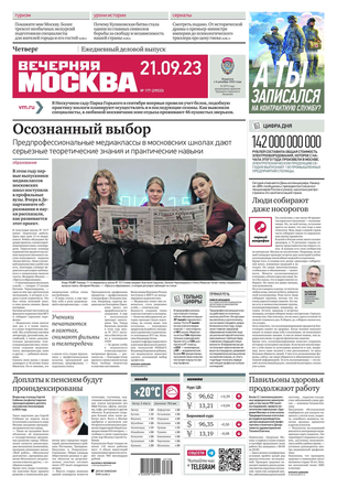 «Вечерняя Москва» — ежедневная российская вечерняя газета, старейшее из вечерних изданий в России, учрежденное в 1923 году. Выходит пять дней в неделю, кроме субботы и воскресенья. Отличается тем, что рассказывает о событиях еще не завершившегося дня. Оперативно освещает хронику и особенности жизни Москвы, охватывает все слои общества и большинство профессиональных и возрастных групп читателей.Издание представлено тремя выпусками – утренним ежедневным, вечерним (выходит три раза в неделю), еженедельным (выходит по четвергам).