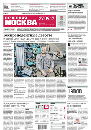 «Вечерняя Москва» — ежедневная российская вечерняя газета, старейшее из вечерних изданий в России, учрежденное в 1923 году. Выходит пять дней в неделю, кроме субботы и воскресенья. Отличается тем, что рассказывает о событиях еще не завершившегося дня. Оперативно освещает хронику и особенности жизни Москвы, охватывает все слои общества и большинство профессиональных и возрастных групп читателей.Издание представлено тремя выпусками – утренним ежедневным, вечерним (выходит три раза в неделю), еженедельным (выходит по четвергам).