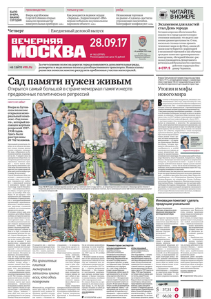 «Вечерняя Москва» — ежедневная российская вечерняя газета, старейшее из вечерних изданий в России, учрежденное в 1923 году. Выходит пять дней в неделю, кроме субботы и воскресенья. Отличается тем, что рассказывает о событиях еще не завершившегося дня. Оперативно освещает хронику и особенности жизни Москвы, охватывает все слои общества и большинство профессиональных и возрастных групп читателей.Издание представлено тремя выпусками – утренним ежедневным, вечерним (выходит три раза в неделю), еженедельным (выходит по четвергам).