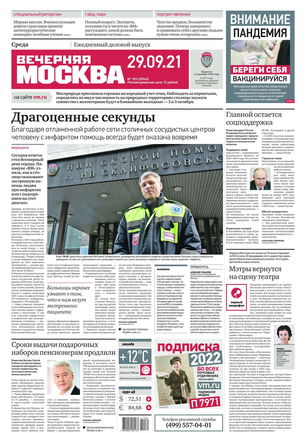 «Вечерняя Москва» — ежедневная российская вечерняя газета, старейшее из вечерних изданий в России, учрежденное в 1923 году. Выходит пять дней в неделю, кроме субботы и воскресенья. Отличается тем, что рассказывает о событиях еще не завершившегося дня. Оперативно освещает хронику и особенности жизни Москвы, охватывает все слои общества и большинство профессиональных и возрастных групп читателей.Издание представлено тремя выпусками – утренним ежедневным, вечерним (выходит три раза в неделю), еженедельным (выходит по четвергам).