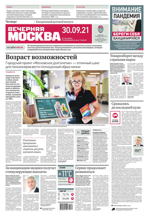 «Вечерняя Москва» — ежедневная российская вечерняя газета, старейшее из вечерних изданий в России, учрежденное в 1923 году. Выходит пять дней в неделю, кроме субботы и воскресенья. Отличается тем, что рассказывает о событиях еще не завершившегося дня. Оперативно освещает хронику и особенности жизни Москвы, охватывает все слои общества и большинство профессиональных и возрастных групп читателей.Издание представлено тремя выпусками – утренним ежедневным, вечерним (выходит три раза в неделю), еженедельным (выходит по четвергам).