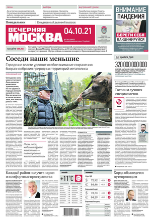«Вечерняя Москва» — ежедневная российская вечерняя газета, старейшее из вечерних изданий в России, учрежденное в 1923 году. Выходит пять дней в неделю, кроме субботы и воскресенья. Отличается тем, что рассказывает о событиях еще не завершившегося дня. Оперативно освещает хронику и особенности жизни Москвы, охватывает все слои общества и большинство профессиональных и возрастных групп читателей.Издание представлено тремя выпусками – утренним ежедневным, вечерним (выходит три раза в неделю), еженедельным (выходит по четвергам).