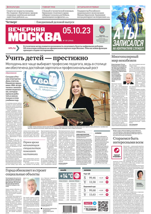 «Вечерняя Москва» — ежедневная российская вечерняя газета, старейшее из вечерних изданий в России, учрежденное в 1923 году. Выходит пять дней в неделю, кроме субботы и воскресенья. Отличается тем, что рассказывает о событиях еще не завершившегося дня. Оперативно освещает хронику и особенности жизни Москвы, охватывает все слои общества и большинство профессиональных и возрастных групп читателей.Издание представлено тремя выпусками – утренним ежедневным, вечерним (выходит три раза в неделю), еженедельным (выходит по четвергам).