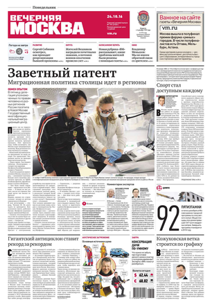 «Вечерняя Москва» — ежедневная российская вечерняя газета, старейшее из вечерних изданий в России, учрежденное в 1923 году. Выходит пять дней в неделю, кроме субботы и воскресенья. Отличается тем, что рассказывает о событиях еще не завершившегося дня. Оперативно освещает хронику и особенности жизни Москвы, охватывает все слои общества и большинство профессиональных и возрастных групп читателей.Издание представлено тремя выпусками – утренним ежедневным, вечерним (выходит три раза в неделю), еженедельным (выходит по четвергам).