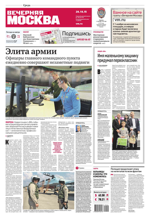 «Вечерняя Москва» — ежедневная российская вечерняя газета, старейшее из вечерних изданий в России, учрежденное в 1923 году. Выходит пять дней в неделю, кроме субботы и воскресенья. Отличается тем, что рассказывает о событиях еще не завершившегося дня. Оперативно освещает хронику и особенности жизни Москвы, охватывает все слои общества и большинство профессиональных и возрастных групп читателей.Издание представлено тремя выпусками – утренним ежедневным, вечерним (выходит три раза в неделю), еженедельным (выходит по четвергам).