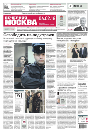 «Вечерняя Москва» — ежедневная российская вечерняя газета, старейшее из вечерних изданий в России, учрежденное в 1923 году. Выходит пять дней в неделю, кроме субботы и воскресенья. Отличается тем, что рассказывает о событиях еще не завершившегося дня. Оперативно освещает хронику и особенности жизни Москвы, охватывает все слои общества и большинство профессиональных и возрастных групп читателей.Издание представлено тремя выпусками – утренним ежедневным, вечерним (выходит три раза в неделю), еженедельным (выходит по четвергам).