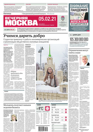 «Вечерняя Москва» — ежедневная российская вечерняя газета, старейшее из вечерних изданий в России, учрежденное в 1923 году. Выходит пять дней в неделю, кроме субботы и воскресенья. Отличается тем, что рассказывает о событиях еще не завершившегося дня. Оперативно освещает хронику и особенности жизни Москвы, охватывает все слои общества и большинство профессиональных и возрастных групп читателей.Издание представлено тремя выпусками – утренним ежедневным, вечерним (выходит три раза в неделю), еженедельным (выходит по четвергам).