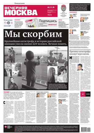 «Вечерняя Москва» — ежедневная российская вечерняя газета, старейшее из вечерних изданий в России, учрежденное в 1923 году. Выходит пять дней в неделю, кроме субботы и воскресенья. Отличается тем, что рассказывает о событиях еще не завершившегося дня. Оперативно освещает хронику и особенности жизни Москвы, охватывает все слои общества и большинство профессиональных и возрастных групп читателей.Издание представлено тремя выпусками – утренним ежедневным, вечерним (выходит три раза в неделю), еженедельным (выходит по четвергам).