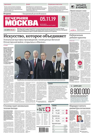 «Вечерняя Москва» — ежедневная российская вечерняя газета, старейшее из вечерних изданий в России, учрежденное в 1923 году. Выходит пять дней в неделю, кроме субботы и воскресенья. Отличается тем, что рассказывает о событиях еще не завершившегося дня. Оперативно освещает хронику и особенности жизни Москвы, охватывает все слои общества и большинство профессиональных и возрастных групп читателей.Издание представлено тремя выпусками – утренним ежедневным, вечерним (выходит три раза в неделю), еженедельным (выходит по четвергам).