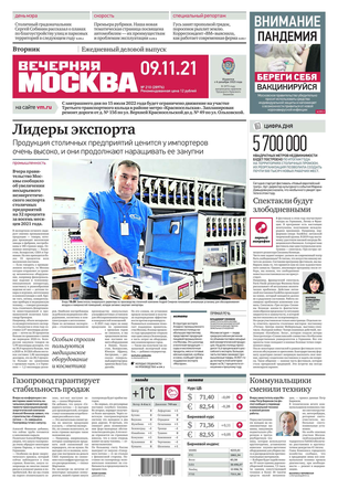 «Вечерняя Москва» — ежедневная российская вечерняя газета, старейшее из вечерних изданий в России, учрежденное в 1923 году. Выходит пять дней в неделю, кроме субботы и воскресенья. Отличается тем, что рассказывает о событиях еще не завершившегося дня. Оперативно освещает хронику и особенности жизни Москвы, охватывает все слои общества и большинство профессиональных и возрастных групп читателей.Издание представлено тремя выпусками – утренним ежедневным, вечерним (выходит три раза в неделю), еженедельным (выходит по четвергам).