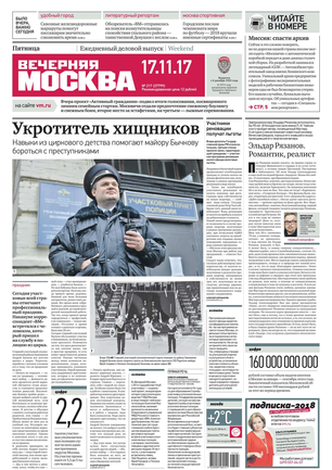 «Вечерняя Москва» — ежедневная российская вечерняя газета, старейшее из вечерних изданий в России, учрежденное в 1923 году. Выходит пять дней в неделю, кроме субботы и воскресенья. Отличается тем, что рассказывает о событиях еще не завершившегося дня. Оперативно освещает хронику и особенности жизни Москвы, охватывает все слои общества и большинство профессиональных и возрастных групп читателей.Издание представлено тремя выпусками – утренним ежедневным, вечерним (выходит три раза в неделю), еженедельным (выходит по четвергам).