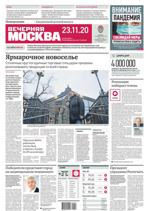 «Вечерняя Москва» — ежедневная российская вечерняя газета, старейшее из вечерних изданий в России, учрежденное в 1923 году. Выходит пять дней в неделю, кроме субботы и воскресенья. Отличается тем, что рассказывает о событиях еще не завершившегося дня. Оперативно освещает хронику и особенности жизни Москвы, охватывает все слои общества и большинство профессиональных и возрастных групп читателей.Издание представлено тремя выпусками – утренним ежедневным, вечерним (выходит три раза в неделю), еженедельным (выходит по четвергам).