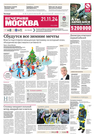 «Вечерняя Москва» — ежедневная российская вечерняя газета, старейшее из вечерних изданий в России, учрежденное в 1923 году. Выходит пять дней в неделю, кроме субботы и воскресенья. Отличается тем, что рассказывает о событиях еще не завершившегося дня. Оперативно освещает хронику и особенности жизни Москвы, охватывает все слои общества и большинство профессиональных и возрастных групп читателей.Издание представлено тремя выпусками – утренним ежедневным, вечерним (выходит три раза в неделю), еженедельным (выходит по четвергам).
