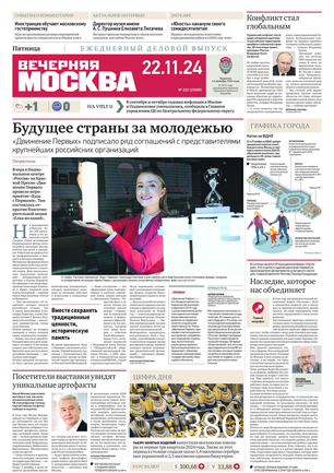«Вечерняя Москва» — ежедневная российская вечерняя газета, старейшее из вечерних изданий в России, учрежденное в 1923 году. Выходит пять дней в неделю, кроме субботы и воскресенья. Отличается тем, что рассказывает о событиях еще не завершившегося дня. Оперативно освещает хронику и особенности жизни Москвы, охватывает все слои общества и большинство профессиональных и возрастных групп читателей.Издание представлено тремя выпусками – утренним ежедневным, вечерним (выходит три раза в неделю), еженедельным (выходит по четвергам).