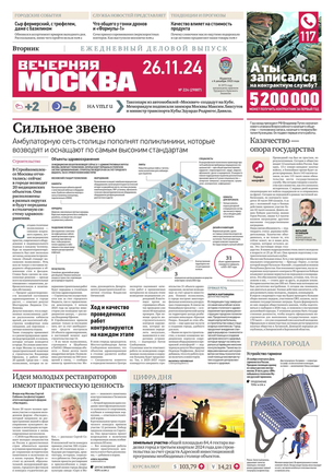 «Вечерняя Москва» — ежедневная российская вечерняя газета, старейшее из вечерних изданий в России, учрежденное в 1923 году. Выходит пять дней в неделю, кроме субботы и воскресенья. Отличается тем, что рассказывает о событиях еще не завершившегося дня. Оперативно освещает хронику и особенности жизни Москвы, охватывает все слои общества и большинство профессиональных и возрастных групп читателей.Издание представлено тремя выпусками – утренним ежедневным, вечерним (выходит три раза в неделю), еженедельным (выходит по четвергам).