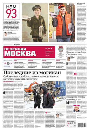 «Вечерняя Москва» — ежедневная российская вечерняя газета, старейшее из вечерних изданий в России, учрежденное в 1923 году. Выходит пять дней в неделю, кроме субботы и воскресенья. Отличается тем, что рассказывает о событиях еще не завершившегося дня. Оперативно освещает хронику и особенности жизни Москвы, охватывает все слои общества и большинство профессиональных и возрастных групп читателей.Издание представлено тремя выпусками – утренним ежедневным, вечерним (выходит три раза в неделю), еженедельным (выходит по четвергам).