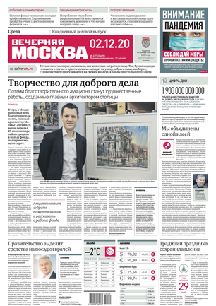 «Вечерняя Москва» — ежедневная российская вечерняя газета, старейшее из вечерних изданий в России, учрежденное в 1923 году. Выходит пять дней в неделю, кроме субботы и воскресенья. Отличается тем, что рассказывает о событиях еще не завершившегося дня. Оперативно освещает хронику и особенности жизни Москвы, охватывает все слои общества и большинство профессиональных и возрастных групп читателей.Издание представлено тремя выпусками – утренним ежедневным, вечерним (выходит три раза в неделю), еженедельным (выходит по четвергам).