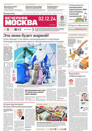 «Вечерняя Москва» — ежедневная российская вечерняя газета, старейшее из вечерних изданий в России, учрежденное в 1923 году. Выходит пять дней в неделю, кроме субботы и воскресенья. Отличается тем, что рассказывает о событиях еще не завершившегося дня. Оперативно освещает хронику и особенности жизни Москвы, охватывает все слои общества и большинство профессиональных и возрастных групп читателей.Издание представлено тремя выпусками – утренним ежедневным, вечерним (выходит три раза в неделю), еженедельным (выходит по четвергам).