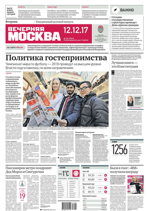 «Вечерняя Москва» — ежедневная российская вечерняя газета, старейшее из вечерних изданий в России, учрежденное в 1923 году. Выходит пять дней в неделю, кроме субботы и воскресенья. Отличается тем, что рассказывает о событиях еще не завершившегося дня. Оперативно освещает хронику и особенности жизни Москвы, охватывает все слои общества и большинство профессиональных и возрастных групп читателей.Издание представлено тремя выпусками – утренним ежедневным, вечерним (выходит три раза в неделю), еженедельным (выходит по четвергам).