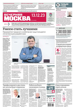 «Вечерняя Москва» — ежедневная российская вечерняя газета, старейшее из вечерних изданий в России, учрежденное в 1923 году. Выходит пять дней в неделю, кроме субботы и воскресенья. Отличается тем, что рассказывает о событиях еще не завершившегося дня. Оперативно освещает хронику и особенности жизни Москвы, охватывает все слои общества и большинство профессиональных и возрастных групп читателей.Издание представлено тремя выпусками – утренним ежедневным, вечерним (выходит три раза в неделю), еженедельным (выходит по четвергам).