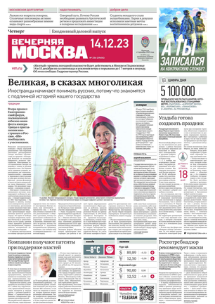 «Вечерняя Москва» — ежедневная российская вечерняя газета, старейшее из вечерних изданий в России, учрежденное в 1923 году. Выходит пять дней в неделю, кроме субботы и воскресенья. Отличается тем, что рассказывает о событиях еще не завершившегося дня. Оперативно освещает хронику и особенности жизни Москвы, охватывает все слои общества и большинство профессиональных и возрастных групп читателей.Издание представлено тремя выпусками – утренним ежедневным, вечерним (выходит три раза в неделю), еженедельным (выходит по четвергам).