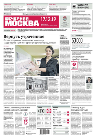 «Вечерняя Москва» — ежедневная российская вечерняя газета, старейшее из вечерних изданий в России, учрежденное в 1923 году. Выходит пять дней в неделю, кроме субботы и воскресенья. Отличается тем, что рассказывает о событиях еще не завершившегося дня. Оперативно освещает хронику и особенности жизни Москвы, охватывает все слои общества и большинство профессиональных и возрастных групп читателей.Издание представлено тремя выпусками – утренним ежедневным, вечерним (выходит три раза в неделю), еженедельным (выходит по четвергам).