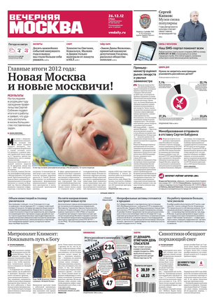 «Вечерняя Москва» — ежедневная российская вечерняя газета, старейшее из вечерних изданий в России, учрежденное в 1923 году. Выходит пять дней в неделю, кроме субботы и воскресенья. Отличается тем, что рассказывает о событиях еще не завершившегося дня. Оперативно освещает хронику и особенности жизни Москвы, охватывает все слои общества и большинство профессиональных и возрастных групп читателей.Издание представлено тремя выпусками – утренним ежедневным, вечерним (выходит три раза в неделю), еженедельным (выходит по четвергам).