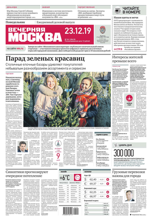 «Вечерняя Москва» — ежедневная российская вечерняя газета, старейшее из вечерних изданий в России, учрежденное в 1923 году. Выходит пять дней в неделю, кроме субботы и воскресенья. Отличается тем, что рассказывает о событиях еще не завершившегося дня. Оперативно освещает хронику и особенности жизни Москвы, охватывает все слои общества и большинство профессиональных и возрастных групп читателей.Издание представлено тремя выпусками – утренним ежедневным, вечерним (выходит три раза в неделю), еженедельным (выходит по четвергам).