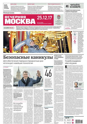 «Вечерняя Москва» — ежедневная российская вечерняя газета, старейшее из вечерних изданий в России, учрежденное в 1923 году. Выходит пять дней в неделю, кроме субботы и воскресенья. Отличается тем, что рассказывает о событиях еще не завершившегося дня. Оперативно освещает хронику и особенности жизни Москвы, охватывает все слои общества и большинство профессиональных и возрастных групп читателей.Издание представлено тремя выпусками – утренним ежедневным, вечерним (выходит три раза в неделю), еженедельным (выходит по четвергам).