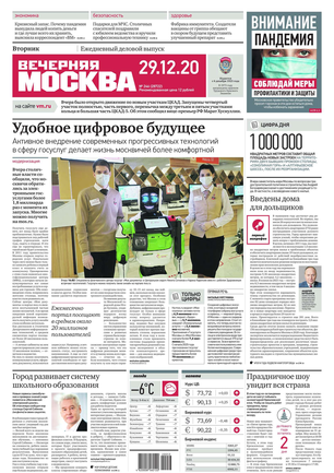 «Вечерняя Москва» — ежедневная российская вечерняя газета, старейшее из вечерних изданий в России, учрежденное в 1923 году. Выходит пять дней в неделю, кроме субботы и воскресенья. Отличается тем, что рассказывает о событиях еще не завершившегося дня. Оперативно освещает хронику и особенности жизни Москвы, охватывает все слои общества и большинство профессиональных и возрастных групп читателей.Издание представлено тремя выпусками – утренним ежедневным, вечерним (выходит три раза в неделю), еженедельным (выходит по четвергам).
