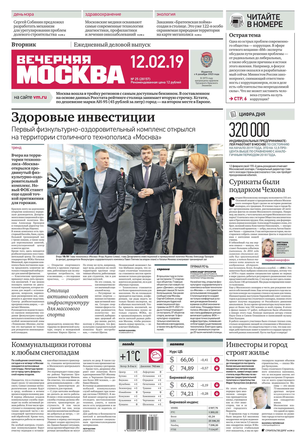 «Вечерняя Москва» — ежедневная российская вечерняя газета, старейшее из вечерних изданий в России, учрежденное в 1923 году. Выходит пять дней в неделю, кроме субботы и воскресенья. Отличается тем, что рассказывает о событиях еще не завершившегося дня. Оперативно освещает хронику и особенности жизни Москвы, охватывает все слои общества и большинство профессиональных и возрастных групп читателей.Издание представлено тремя выпусками – утренним ежедневным, вечерним (выходит три раза в неделю), еженедельным (выходит по четвергам).