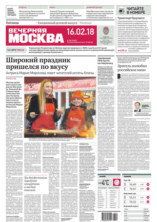 «Вечерняя Москва» — ежедневная российская вечерняя газета, старейшее из вечерних изданий в России, учрежденное в 1923 году. Выходит пять дней в неделю, кроме субботы и воскресенья. Отличается тем, что рассказывает о событиях еще не завершившегося дня. Оперативно освещает хронику и особенности жизни Москвы, охватывает все слои общества и большинство профессиональных и возрастных групп читателей.Издание представлено тремя выпусками – утренним ежедневным, вечерним (выходит три раза в неделю), еженедельным (выходит по четвергам).