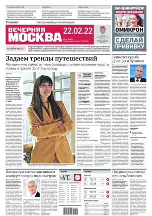 «Вечерняя Москва» — ежедневная российская вечерняя газета, старейшее из вечерних изданий в России, учрежденное в 1923 году. Выходит пять дней в неделю, кроме субботы и воскресенья. Отличается тем, что рассказывает о событиях еще не завершившегося дня. Оперативно освещает хронику и особенности жизни Москвы, охватывает все слои общества и большинство профессиональных и возрастных групп читателей.Издание представлено тремя выпусками – утренним ежедневным, вечерним (выходит три раза в неделю), еженедельным (выходит по четвергам).