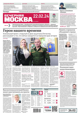«Вечерняя Москва» — ежедневная российская вечерняя газета, старейшее из вечерних изданий в России, учрежденное в 1923 году. Выходит пять дней в неделю, кроме субботы и воскресенья. Отличается тем, что рассказывает о событиях еще не завершившегося дня. Оперативно освещает хронику и особенности жизни Москвы, охватывает все слои общества и большинство профессиональных и возрастных групп читателей.Издание представлено тремя выпусками – утренним ежедневным, вечерним (выходит три раза в неделю), еженедельным (выходит по четвергам).