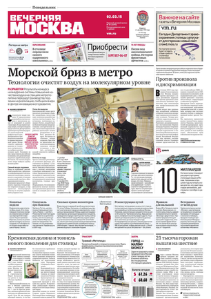 «Вечерняя Москва» — ежедневная российская вечерняя газета, старейшее из вечерних изданий в России, учрежденное в 1923 году. Выходит пять дней в неделю, кроме субботы и воскресенья. Отличается тем, что рассказывает о событиях еще не завершившегося дня. Оперативно освещает хронику и особенности жизни Москвы, охватывает все слои общества и большинство профессиональных и возрастных групп читателей.Издание представлено тремя выпусками – утренним ежедневным, вечерним (выходит три раза в неделю), еженедельным (выходит по четвергам).