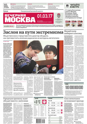 «Вечерняя Москва» — ежедневная российская вечерняя газета, старейшее из вечерних изданий в России, учрежденное в 1923 году. Выходит пять дней в неделю, кроме субботы и воскресенья. Отличается тем, что рассказывает о событиях еще не завершившегося дня. Оперативно освещает хронику и особенности жизни Москвы, охватывает все слои общества и большинство профессиональных и возрастных групп читателей.Издание представлено тремя выпусками – утренним ежедневным, вечерним (выходит три раза в неделю), еженедельным (выходит по четвергам).