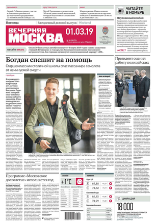 «Вечерняя Москва» — ежедневная российская вечерняя газета, старейшее из вечерних изданий в России, учрежденное в 1923 году. Выходит пять дней в неделю, кроме субботы и воскресенья. Отличается тем, что рассказывает о событиях еще не завершившегося дня. Оперативно освещает хронику и особенности жизни Москвы, охватывает все слои общества и большинство профессиональных и возрастных групп читателей.Издание представлено тремя выпусками – утренним ежедневным, вечерним (выходит три раза в неделю), еженедельным (выходит по четвергам).