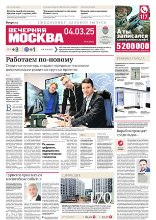 «Вечерняя Москва» — ежедневная российская вечерняя газета, старейшее из вечерних изданий в России, учрежденное в 1923 году. Выходит пять дней в неделю, кроме субботы и воскресенья. Отличается тем, что рассказывает о событиях еще не завершившегося дня. Оперативно освещает хронику и особенности жизни Москвы, охватывает все слои общества и большинство профессиональных и возрастных групп читателей.Издание представлено тремя выпусками – утренним ежедневным, вечерним (выходит три раза в неделю), еженедельным (выходит по четвергам).