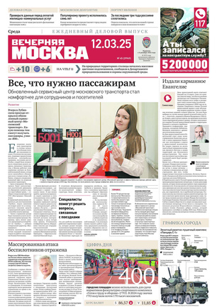 «Вечерняя Москва» — ежедневная российская вечерняя газета, старейшее из вечерних изданий в России, учрежденное в 1923 году. Выходит пять дней в неделю, кроме субботы и воскресенья. Отличается тем, что рассказывает о событиях еще не завершившегося дня. Оперативно освещает хронику и особенности жизни Москвы, охватывает все слои общества и большинство профессиональных и возрастных групп читателей.Издание представлено тремя выпусками – утренним ежедневным, вечерним (выходит три раза в неделю), еженедельным (выходит по четвергам).