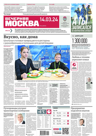 «Вечерняя Москва» — ежедневная российская вечерняя газета, старейшее из вечерних изданий в России, учрежденное в 1923 году. Выходит пять дней в неделю, кроме субботы и воскресенья. Отличается тем, что рассказывает о событиях еще не завершившегося дня. Оперативно освещает хронику и особенности жизни Москвы, охватывает все слои общества и большинство профессиональных и возрастных групп читателей.Издание представлено тремя выпусками – утренним ежедневным, вечерним (выходит три раза в неделю), еженедельным (выходит по четвергам).