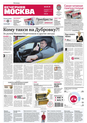 «Вечерняя Москва» — ежедневная российская вечерняя газета, старейшее из вечерних изданий в России, учрежденное в 1923 году. Выходит пять дней в неделю, кроме субботы и воскресенья. Отличается тем, что рассказывает о событиях еще не завершившегося дня. Оперативно освещает хронику и особенности жизни Москвы, охватывает все слои общества и большинство профессиональных и возрастных групп читателей.Издание представлено тремя выпусками – утренним ежедневным, вечерним (выходит три раза в неделю), еженедельным (выходит по четвергам).