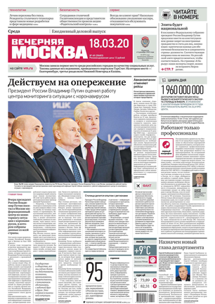 «Вечерняя Москва» — ежедневная российская вечерняя газета, старейшее из вечерних изданий в России, учрежденное в 1923 году. Выходит пять дней в неделю, кроме субботы и воскресенья. Отличается тем, что рассказывает о событиях еще не завершившегося дня. Оперативно освещает хронику и особенности жизни Москвы, охватывает все слои общества и большинство профессиональных и возрастных групп читателей.Издание представлено тремя выпусками – утренним ежедневным, вечерним (выходит три раза в неделю), еженедельным (выходит по четвергам).
