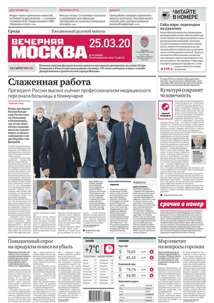 «Вечерняя Москва» — ежедневная российская вечерняя газета, старейшее из вечерних изданий в России, учрежденное в 1923 году. Выходит пять дней в неделю, кроме субботы и воскресенья. Отличается тем, что рассказывает о событиях еще не завершившегося дня. Оперативно освещает хронику и особенности жизни Москвы, охватывает все слои общества и большинство профессиональных и возрастных групп читателей.Издание представлено тремя выпусками – утренним ежедневным, вечерним (выходит три раза в неделю), еженедельным (выходит по четвергам).